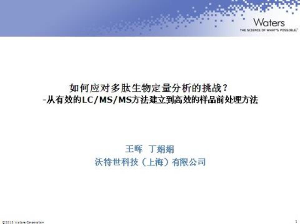 对于小分子药物,肽类药物生物分析有很多难点,比如灵敏度差和吸附现象等。沃特世公司在肽类物质生物分析方面一直处于业界领先地位,并且针对肽类物质生物分析有完整的解决方案,从超高效液相色谱(UPLC)分离到高灵敏度的质谱(Xevo TQ-S)再到无须挥干便具有浓缩作用的样品前处理技术(uElution),可以帮您解决肽类物质分析中的难题。