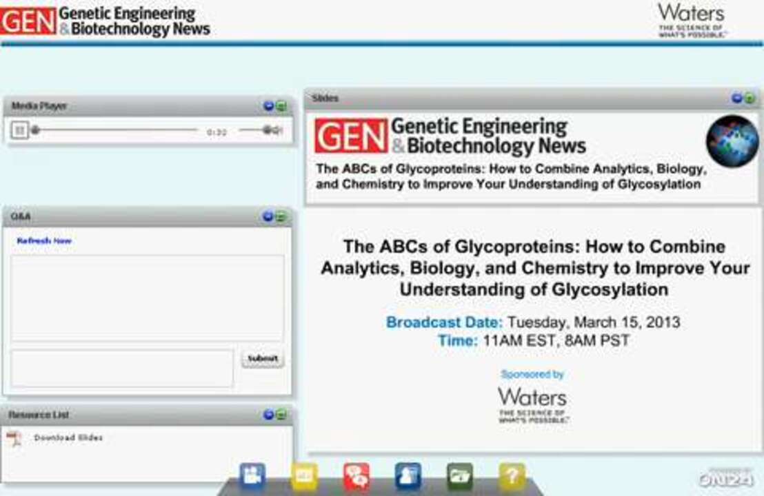 Pauline Rudd of NIBRT and Ying Qing Yu of Waters discuss the importance of and methodologies for glycan analysis in characteriation of protein biotherapeutics. Genetic Engineering News, 3/15/2013.