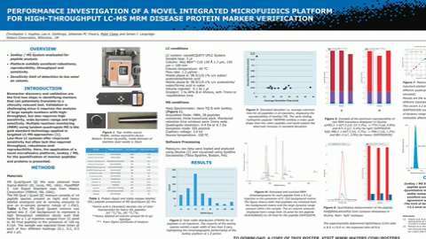 In this video poster from ASMS 2014, Jim Langridge discusses "Performance Investigation of a Novel Integrated Microfuidics Platform for High-Throughput LC-MS MRM Disease Protein Marker Verification"