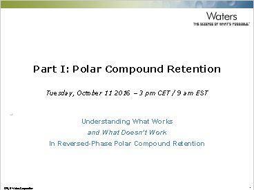 Session 1 is dedicated to Reversed Phase Liquid Chromatography as an option to analyse Polar Compounds. Uncover some tips & tricks to address your most common challenges with this chromatographic technique.