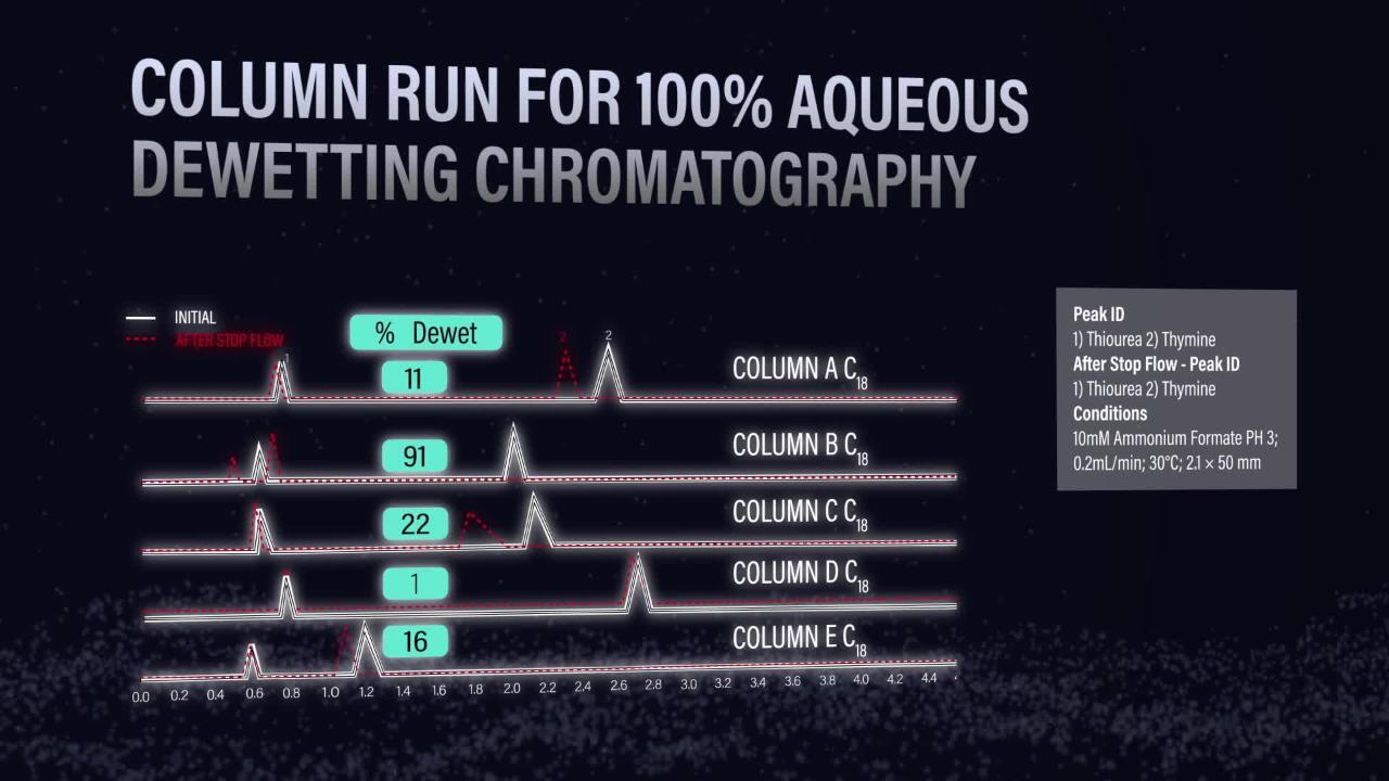 In reversed-phase chromatography, water is a weaker solvent so you expect everything to be retained. What about polar compounds? Johnathan Turner and Kim Haynes test C18 columns, swapping between 100% organic and 100% aqueous. See what happens.