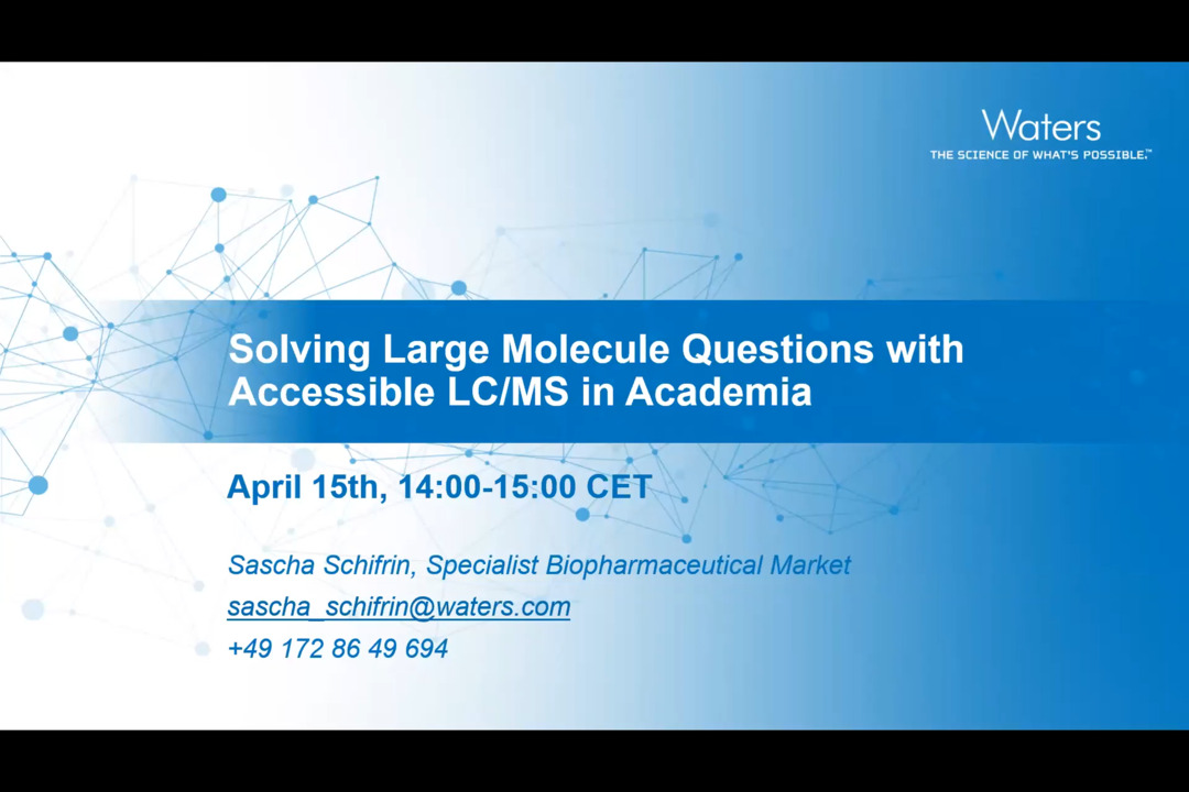 The webinar highlights how easy-to-use, routine LC/MS is being employed to bring the scientist closer to the point of decision for academic scientist.