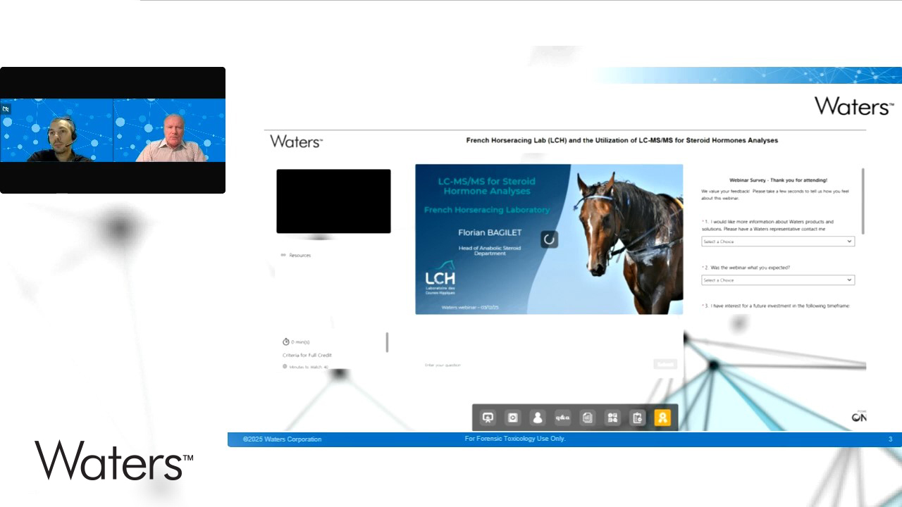 Exclusive webinar with Florian Bagilet from the French Horseracing Laboratory exploring cutting-edge advancements in detecting anabolic steroids across multiple biological matrices.