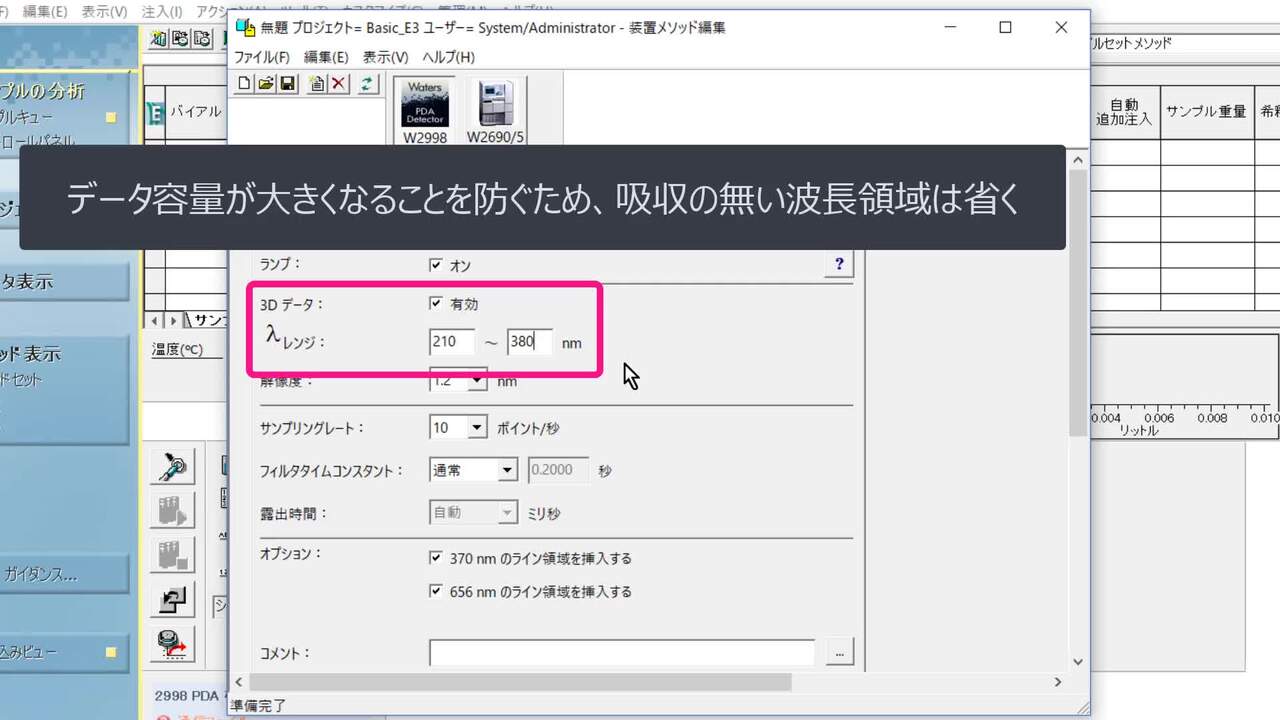 2998 PDA検出器の装置メソッドについてご説明します。 ※音声が OFF になっています、PC の音声を ON にしてご視聴ください。